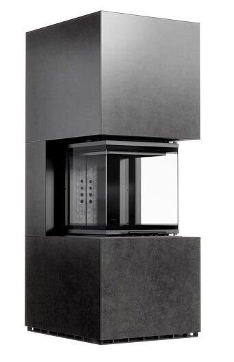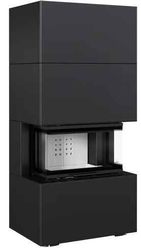 Kratki Floki 7KW dieser Heizkaminbausatz ist mit Sinterstein Verkleidet und kann in acht Farben Bestellt werden. Brennraum links oder rechts.